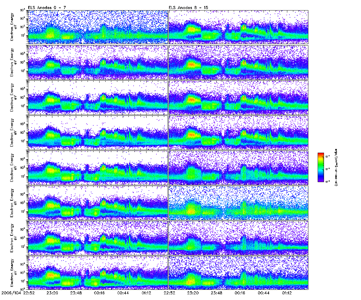 An overall display of ELS data throughout orbit 2901 may be found in the file: 2901_ELS_Overview.pdf 2901_ELS_Overview.gifFiles displaying close-ups of all ELS sector data are found in the files: 2901_ELS_OverCloseA.pdf 2901_ELS_OverCloseA.gif2901_ELS_OverCloseB.pdf 2901_ELS_OverCloseC.pdf |