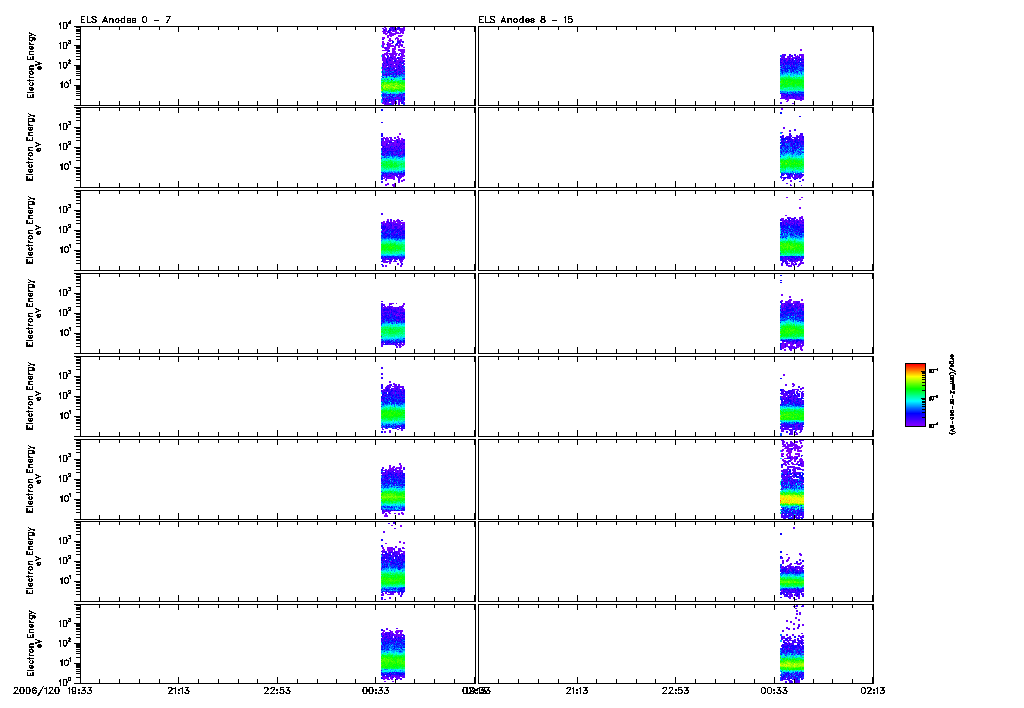 An overall display of ELS data throughout orbit 2958 may be found in the file: 2958_ELS_Overview.pdf 2958_ELS_Overview.gifFiles displaying close-ups of all ELS sector data are found in the file: 2958_ELS_OverCloseA.pdf 2958_ELS_OverCloseA.gif |