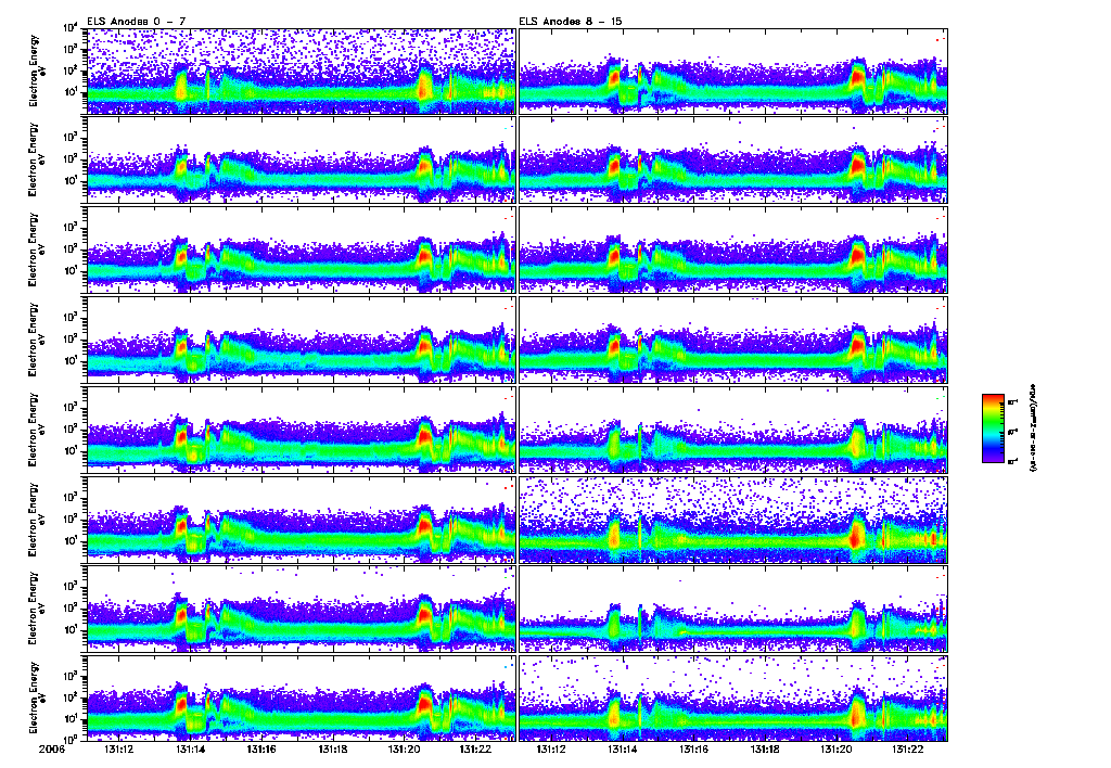 An overall display of ELS data throughout orbit 2996 may be found in the file: 2996_ELS_Overview.pdf 2996_ELS_Overview.gifFiles displaying close-ups of all ELS sector data are found in the files: 2996_ELS_OverCloseA.pdf 2996_ELS_OverCloseA.gif2996_ELS_OverCloseB.pdf 2996_ELS_OverCloseC.pdf 2996_ELS_OverCloseD.pdf 2996_ELS_OverCloseE.pdf 2996_ELS_OverCloseF.pdf 2996_ELS_OverCloseG.pdf 2996_ELS_OverCloseH.pdf 2996_ELS_OverCloseI.pdf 2996_ELS_OverCloseJ.pdf 2996_ELS_OverCloseK.pdf 2996_ELS_OverCloseL.pdf 2996_ELS_OverCloseM.pdf |