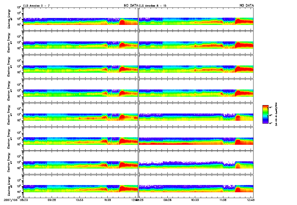 An overall display of ELS data throughout orbit 4316 may be found in the file: 4316_ELS_Overview.pdf 4316_ELS_Overview.gifFiles displaying close-ups of all ELS sector data are found in the files: 4316_ELS_OverCloseA.pdf 4316_ELS_OverCloseA.gif4316_ELS_OverCloseG.pdf |