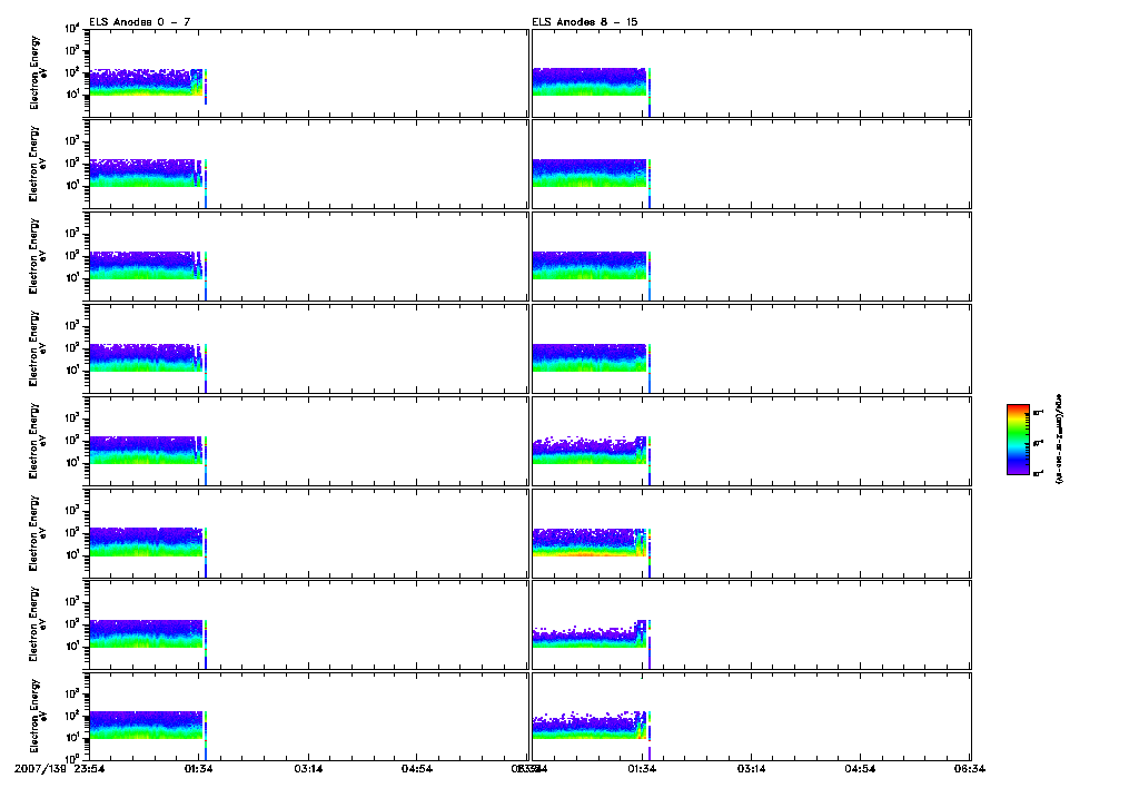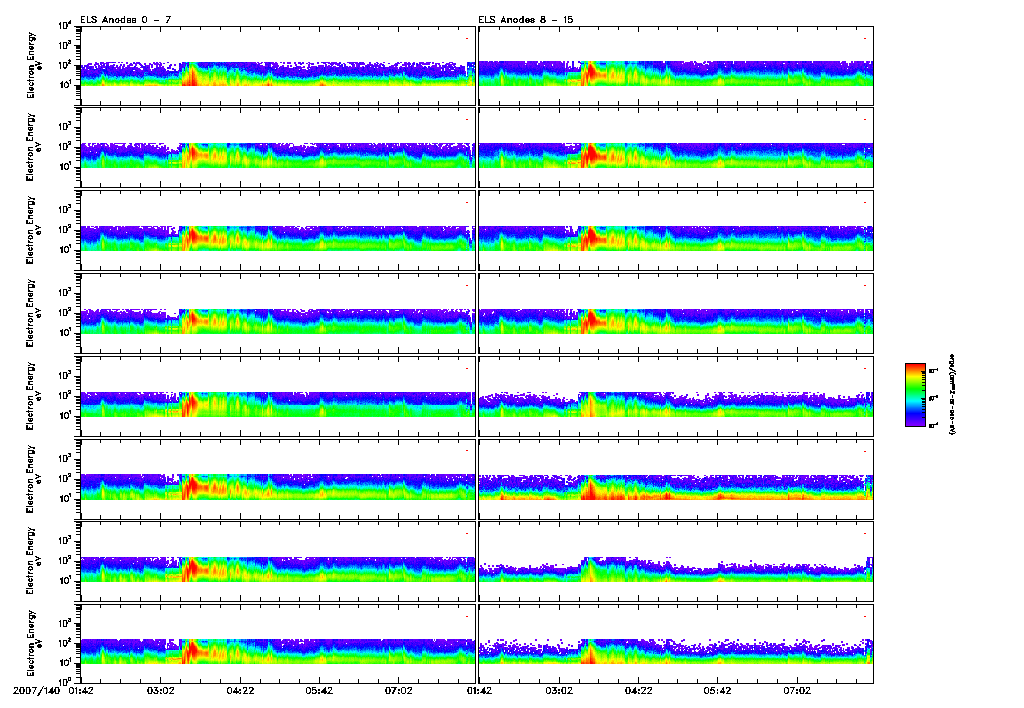 An overall display of ELS data throughout orbit 4330 may be found in the file: 4330_ELS_Overview.pdf 4330_ELS_Overview.gifFiles displaying close-ups of all ELS sector data are found in the files: 4330_ELS_OverCloseA.pdf 4330_ELS_OverCloseA.gif4330_ELS_OverCloseB.pdf 4330_ELS_OverCloseB.gif |