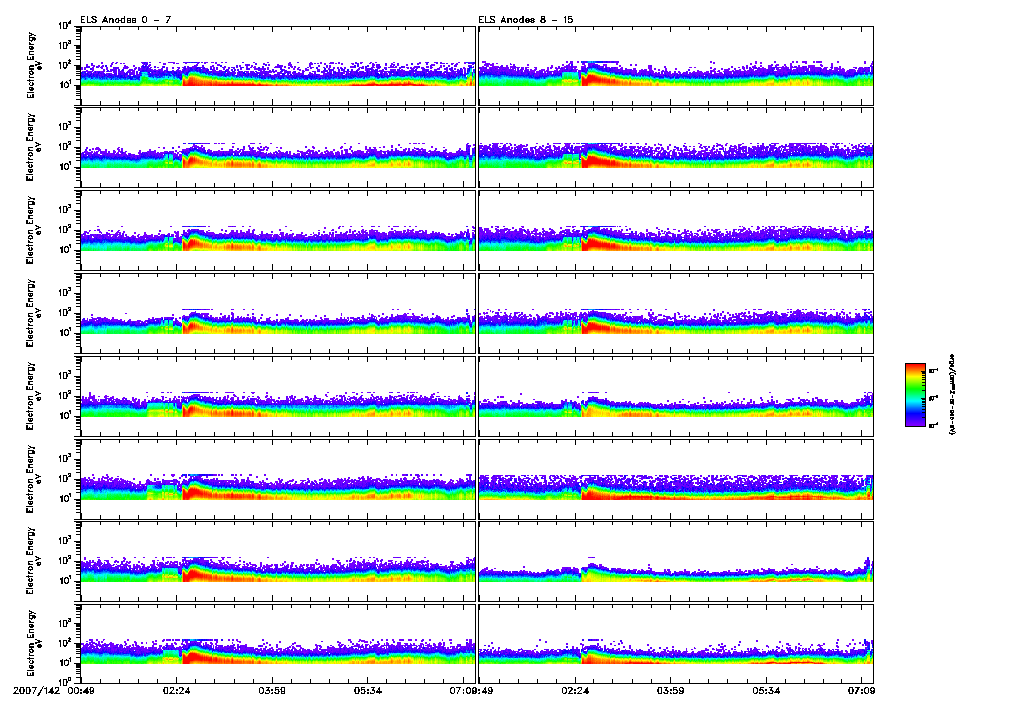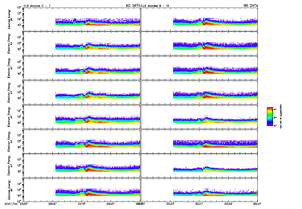 An overall display of ELS data throughout orbit 4337 may be found in the file: 4337_ELS_Overview.pdf 4337_ELS_Overview.gifFiles displaying close-ups of all ELS sector data are found in the files: 4337_ELS_OverCloseA.pdf 4337_ELS_OverCloseA.gif4337_ELS_OverCloseB.pdf 4337_ELS_OverCloseC.pdf 4337_ELS_OverCloseD.pdf 4337_ELS_OverCloseE.pdf 4337_ELS_OverCloseF.pdf 4337_ELS_OverCloseG.pdf |